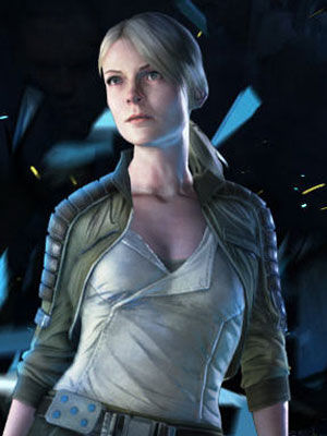 В окружении различных существ в республиканской форме, что-то делающая, вроде как отдающая распоряжения. Её лицо чем-то озабочено, но она в окружении друзей и ей ничто не угрожает...
